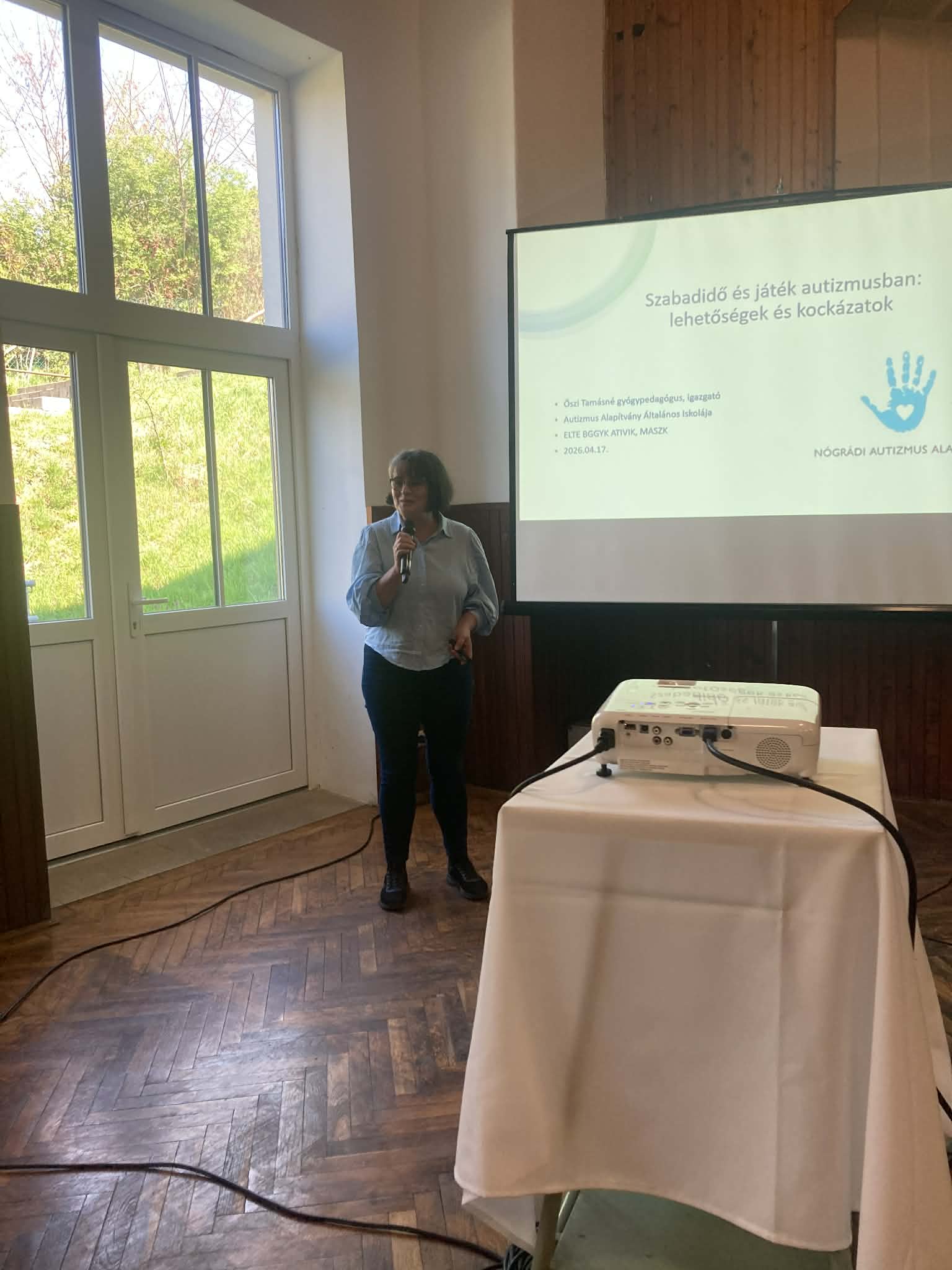 Rövid kávészünet után Őszi Tamásné Patrícia az Autizmus Alapítvány Általános Iskola igazgatója, az ELTE Bárczi Gusztáv Gyógypedagógiai Kar Autizmus spektrum zavarok pedagógiája szakirány oktatójának előadása következett. Szabadidő és játék autizmusban: lehetőségek és kockázatok címmel.